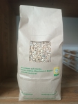 Zutaten: Hafer-, Dinkel-, Gersten-, Roggen-, Weizenflocken, Honig (15%), Sonnenblumenöl, Haselnüsse, Rosinen, Sonnenblumenkerne, Leinsamenkörner, Sesam